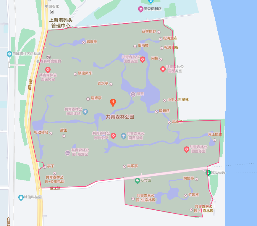 从左手边往里走,有专门的烧烤野营区和跑马场,周末和节假日时烧烤区相当火爆。继续往公园深处,有人工湖泊,可以划船泛舟,也可以坐一次滑索从湖上滑到对岸。公园深处主要是树林和草坪,环境更为安静,适合散步或小憩,走到公园东南端是黄浦江畔,可以看到浦江上的往来船只。